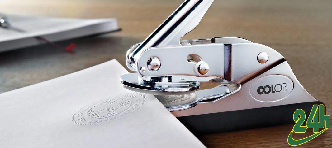 Máy ép nổi COLOP được trang bị tấm khuôn mặt dấu bằng nhựa hoặc kim loại